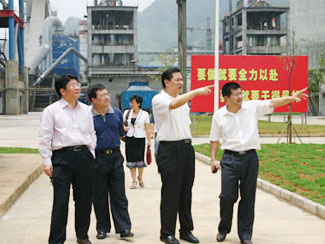 2006年9月13日,省国土厅厅长黄琪玉,在将乐县委书记林传衍的陪同下,来到公司视察,顶着绵绵细雨,黄厅长来到回转窑现场...
